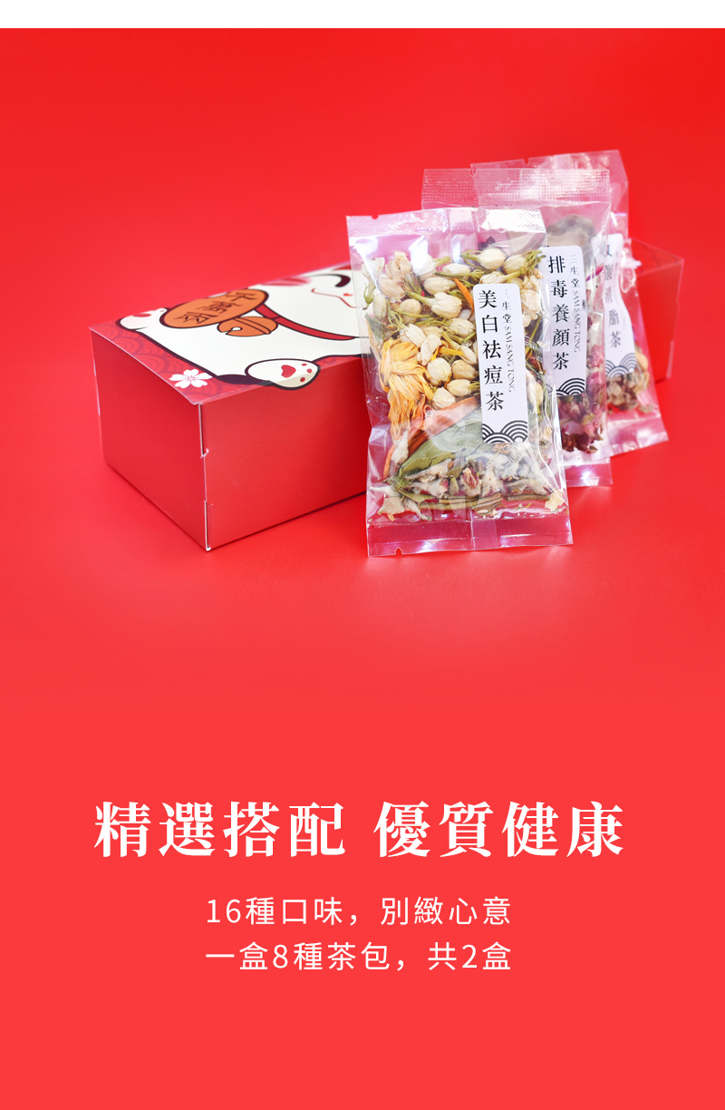本禮盒淨含量154g,內含2盒,共16包精選組合花茶