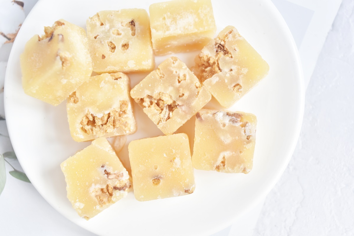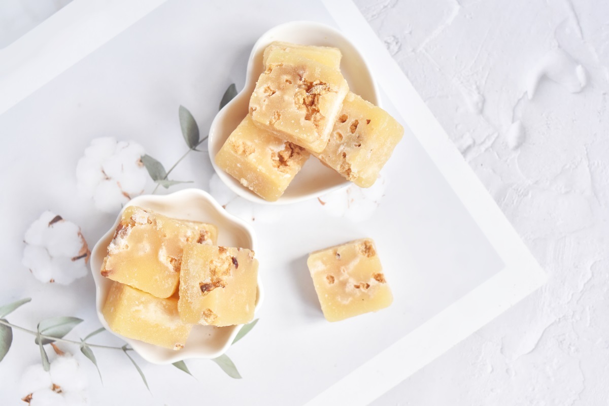 雪梨具有清熱生津、潤燥化痰、通便潤膚的作用,可用於咳嗽痰黃、熱病口渴、大便幹結、飲酒過度等癥,還有養護肌膚的作用。我們將冰糖和雪梨優雅的結合,將雪梨包裹成方塊,開水沖泡後,茶香四溢,入口甘甜不斷。採用了手工古法熬製,科學比例搭配,更好的保留了食材的營養。